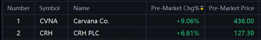 Shares of Carvana Co. rallied 9% in premarket trading. Carvana and two other companies will join the S&P 500 in about two weeks, S&P Dow Jones Indices said late Friday - dashing the hopes of those investors who expected bigger tech names or a crypto giant to get the honors this time around.