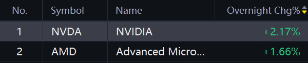 Nvidia and AMD shares rose 2% in overnight trading as US to allow Nvidia H200 chip shipments to China.