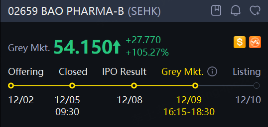 Bao Pharma shares jumped 105.3% in in Hong Kong grey market.