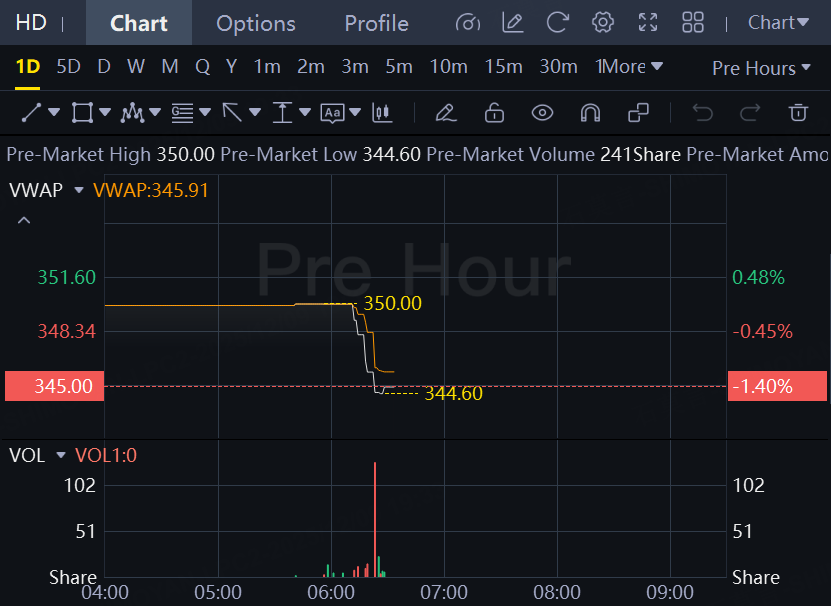 Home Depot shares edged down 1.4% in premarket trading Tuesday.