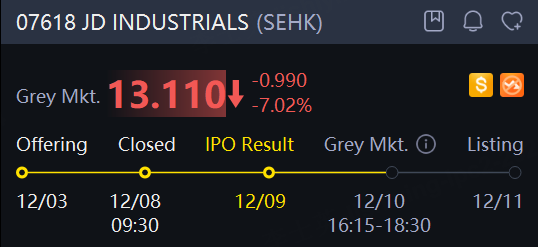 JD Industrials shares droppped in Hong Kong grey market.