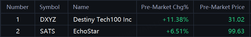 Destiny Tech100 Inc rose 11% in premarket trading, EchoStar jumped over 6%. SpaceX is moving ahead with plans for an initial public offering that would seek to raise significantly more than $30 billion, people familiar with the matter said, in a transaction that would make it the biggest listing of all time.