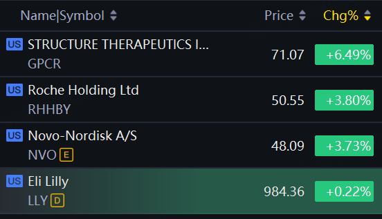 Weight-Loss Drugmakers' Stocks Jump. Structure Therapeutics up over 6%; Novo Nordisk, Roche up nearly 4%; Eli Lilly up slightly.