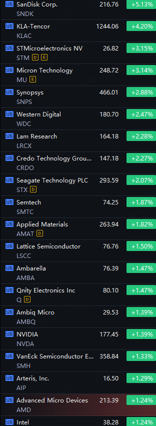 Chip Stocks Gained. SanDisk up 5%; KLA-Tencor up 4%; STMicroelectronics and Micron up 3%; Western Digital rose 2%; Nvidia and AMD rose 1%.