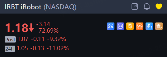 iRobot shares dropped another 11% in overnight trading after sinking about 73% on Monday. The maker of the Roomba vacuum cleaner, filed for bankruptcy protection on Sunday, saying that it would go private after being bought by Picea Robotics, its primary manufacturer.