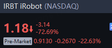 iRobot tumbled 23% in premarket after plunging 73% on Monday.