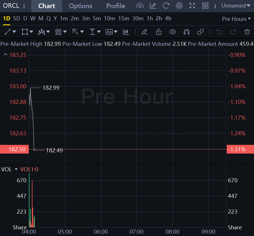 Oracle kept falling, down 1% in premarket, dropping to its lowest levels since early June.