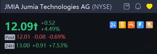 Jumia Technologies shares jumped another 7.5% in overnight trading. Jumia stock gained 4.5% on Tuesday after Craig-Hallum analyst Ryan Sigdahl initiated coverage with a Buy rating and $18 price target.