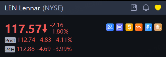 Lennar, one of the nation’s largest home builders, missed earnings estimates for its fourth quarter and issued disappointing guidance, sending shares falling 4% in overnight trading.