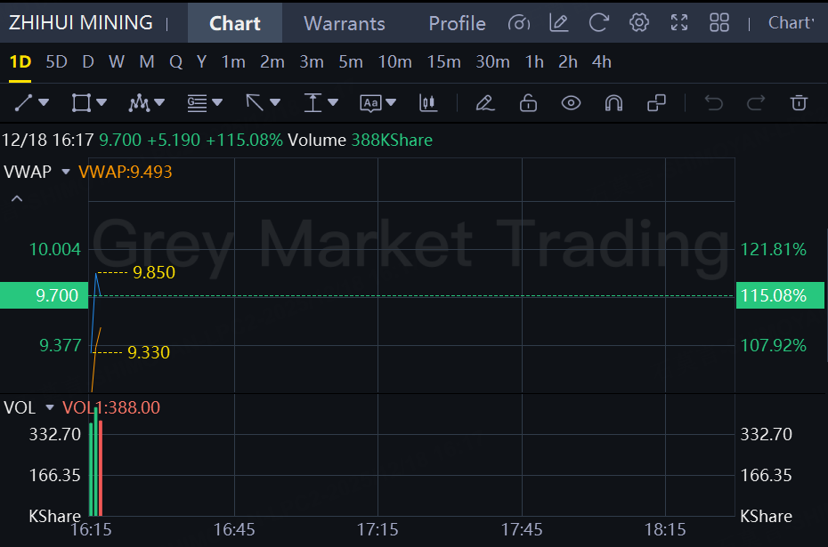 Mineral exploration and production company Zhihui Mining stock rocketed 115% in Hong Kong’s grey market trading.