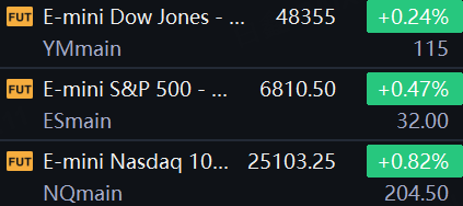 As of Dec 18, U.S. stock index futures are showing a constructive bid across benchmarks. Dow futures rose 0.24% to 48,355.00, S&P 500 futures increased 0.47% to 6,810.50, and Nasdaq 100 futures advanced 0.82% to 25,103.25. The tech-heavy Nasdaq 100 leads as AI-linked chip momentum improves, while broader futures reflect a steadier tone ahead of macro and regulatory headlines. Overall, the futures curve implies a firmer open, with AI demand narratives supporting semis and megacaps.