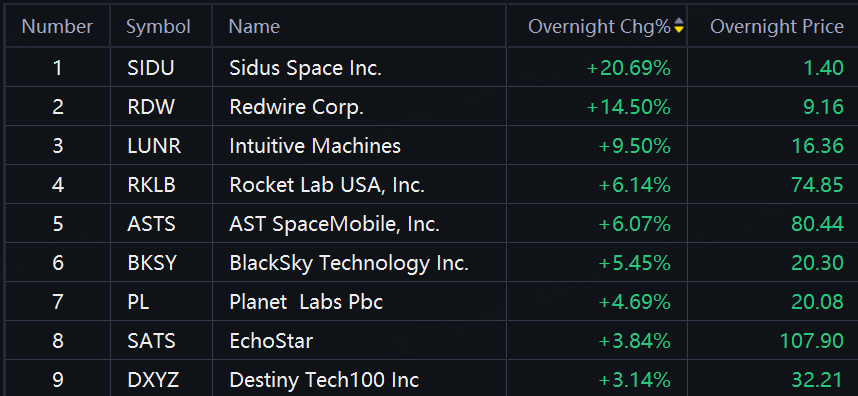 Space stocks shined with Redwire up 15%; LUNR up over 9%; Rocket Lab up over 6%.