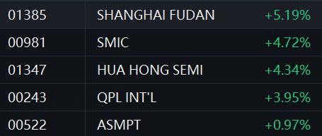 HK Chip Stocks Rally. Shanghai Fudan up 5%; Hua Hong Semi, SMIC and QPL up 4%; ASMPT up 1%.