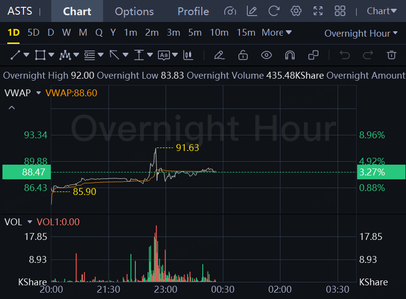 Shares of AST SpaceMobile jumped over 3% in overnight trading.