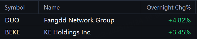 Shares of real estate brokerage firms jumped in overnight trading.