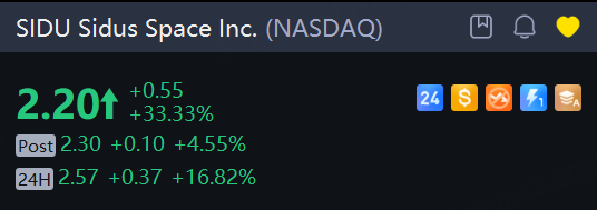 Sidus Space shares surged 16.8% in overnight trading, after soared 33.3% on Wednesday.
