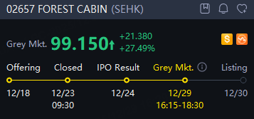 Skincare products maker FOREST CABIN jumped 27% in the Hong Kong grey market.
