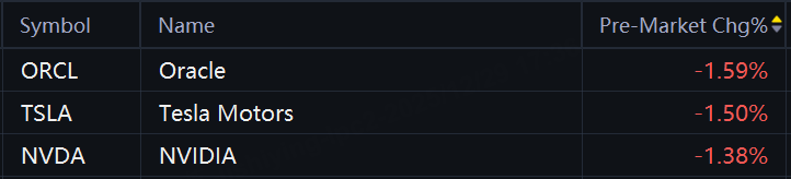 Some Big tech stocks dropped in premarket trading. Oracle and Tesla fell about 2%; Nvidia fell more than 1%.