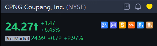 Coupang shares gained 3% in premarket trading.