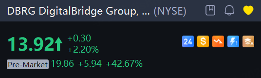 DigitalBridge shares surged 42.7% in premarket trading.