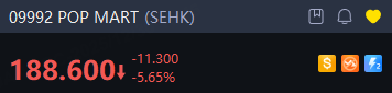 POP MART stock fell 6% in Hong Kong trading.