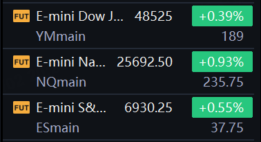 At 7:25 a.m. ET, Dow E-minis were up 189 points, or 0.39%, S&P 500 E-minis were up 37.75 points, or 0.55%, and Nasdaq 100 E-minis were up 235.75 points, or 0.93%.