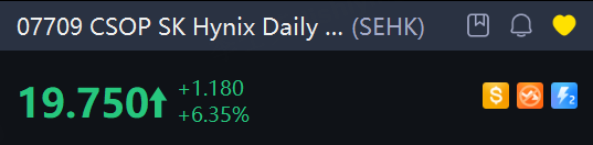 CSOP SK Hynix Daily (2x) Leveraged Product jumped more than 6% in Hong Kong, following SK Hynix hitting a record high in South Korea. On the news front, Samsung and SK Hynix plan to raise DRAM prices by 60%–70%.