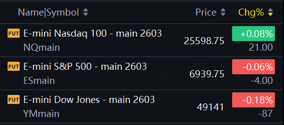 As of Jan 6, U.S. stock index futures are mixed, with Dow futures softer, S&P 500 futures flat, and Nasdaq 100 futures slightly higher. E-mini Dow futures slipped 0.18%, while E-mini S&P 500 futures edged down 0.06%. E-mini Nasdaq 100 futures rose 0.08%, suggesting megacap tech could open on a firmer footing as investors digest high-profile product news from the CES technology showcase.