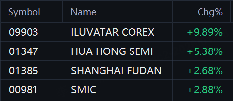 Semiconductor stocks gained in Hong Kong. Iluvatar Corex rose 10%; Hua Hong Semi rose 5%; SMIC and Shanghai Fudan rose 3%.