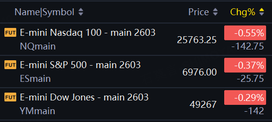 US stock futures slid on geopolitical risks. Nasdaq 100 futures fell 0.55%; S&P futures slid 0.37%; Dow futures fell 0.29%.
