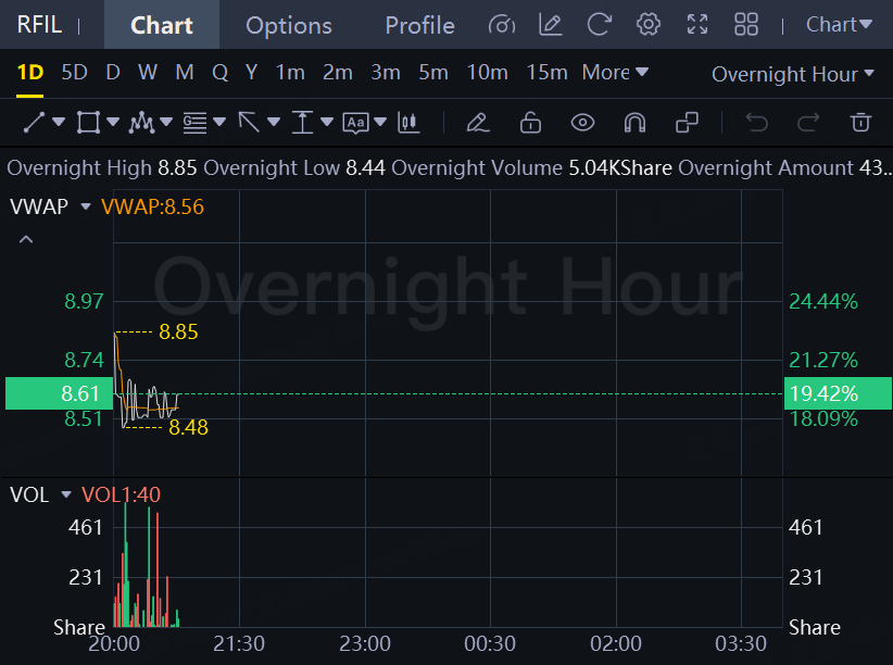 RF Industries shares climbed over 19% in overnight trading after the company swung to a profit in the fourth quarter. The interconnect product manufacturer on Wednesday reported a fourth-quarter profit of $174,000, or 2 cents a share, compared with a loss of $238,000, or 2 cents a share, a year earlier.
