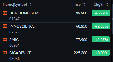 Hong Kong’s semiconductor stocks rose on Thursday. Hua Hong Semi up 7%; Innoscience, SMIC up 3%.