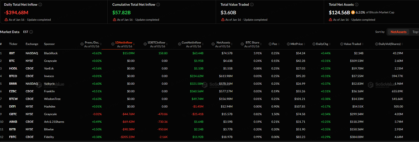 The Bitcoin spot ETF with the highest net inflow on Jan. 16 was iShares Bitcoin Trust, with a net inflow of $15.09 million.