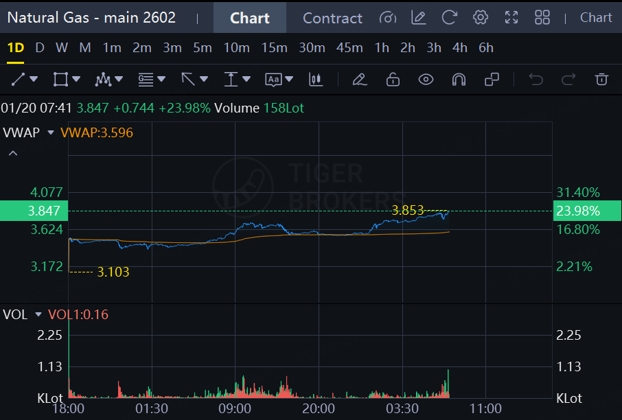 Futures for February delivery rose as much as 24% to $3.847/mmbtu.