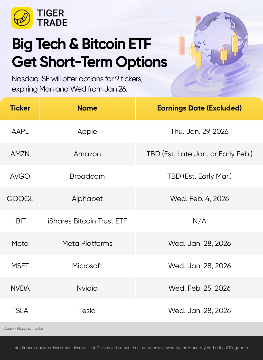Nasdaq will offer short-term options for nine prominent tickers, including major technology companies and the iShares Bitcoin Trust ETF (IBIT), starting January 26, 2026. These options will have Monday and Wednesday expirations, providing investors with more flexibility for short-term trading strategies.