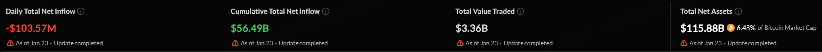 The Bitcoin spot ETF with the highest net outflow on January 23 was iShares Bitcoin Trust (IBIT), with a net outflow of $101.62 million, according to SoSoValue.