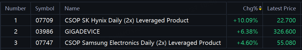 Storage shares advanced in Hong Kong. CSOP SK Hynix Daily 2x Leveraged Product surged 9.5%, CSOP Samsung Electronics Daily 2x Leveraged Product jumped 4.6% ahead of earnings reports this week; GigaDevice up over 6%.