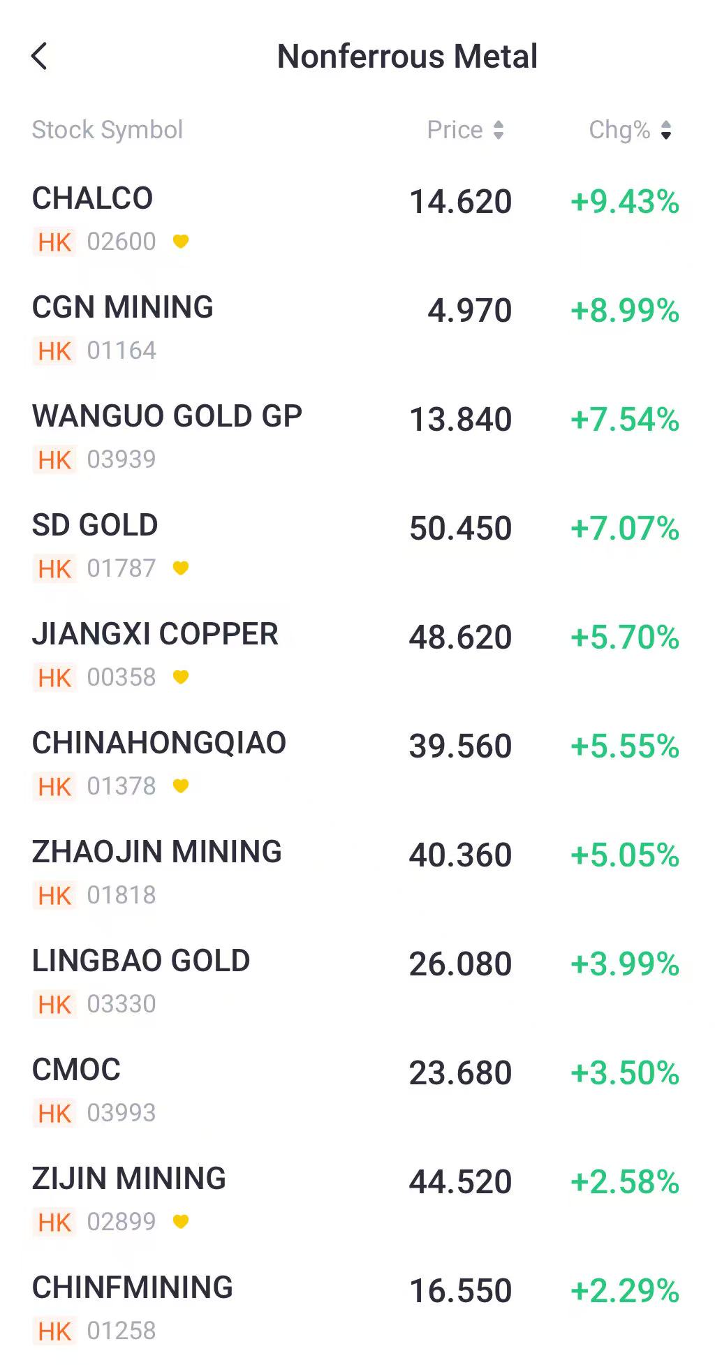 Nonferrous Metal shares shine. Chalco, CGN Mining up around 9%; Wanguo Gold, SD Gold up over 7%; China Hongqiao up over 5%; CMOC up over 3%.