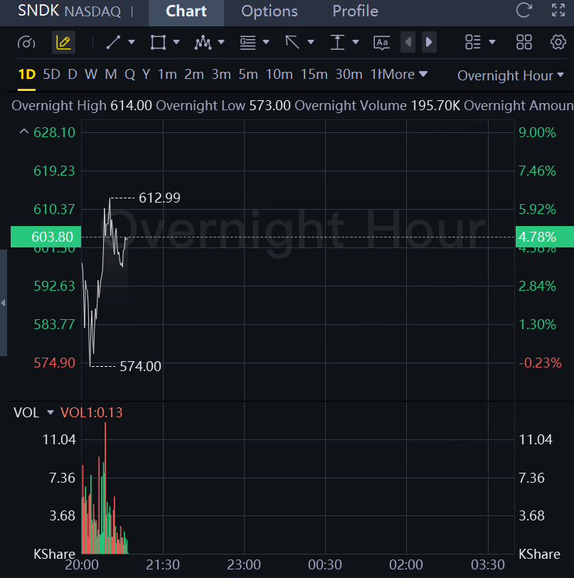 SanDisk jumped 5% in overnight trading, heading to all time new high.