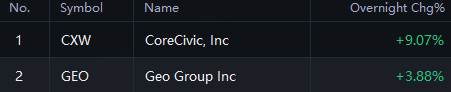 Prison operators stocks gained . CoreCivic up 9%; Geo up 4%.