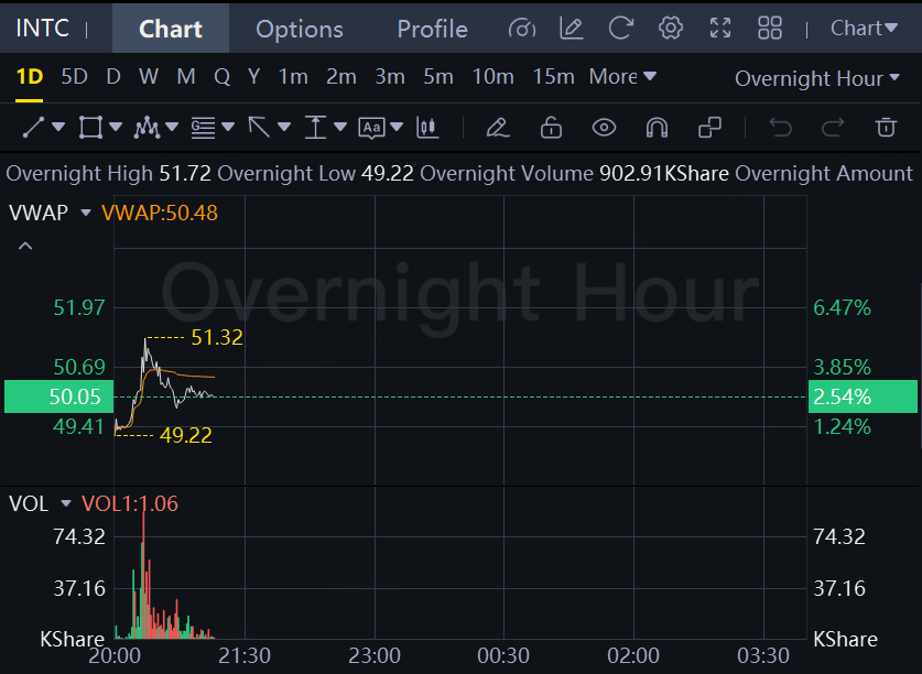 Shares of Intel jumped 2.5% in overnight trading on the news.