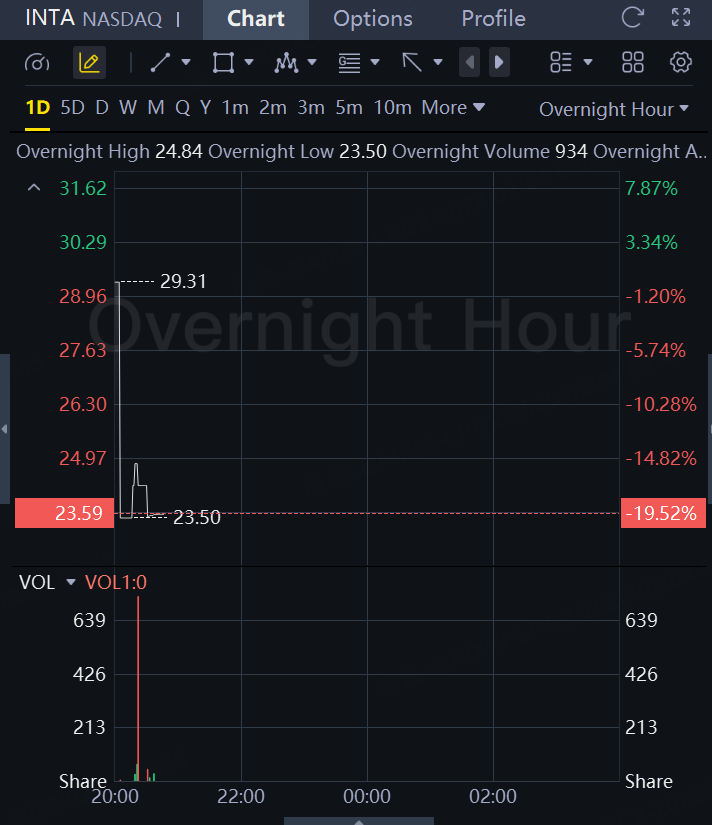 Intapp, Inc. (INTA) experienced a significant overnight plunge of 20% following the release of its second-quarter fiscal year 2026 financial results. The sharp decline appears driven by a GAAP earnings miss and cautious forward guidance. The company reported a quarterly loss of $0.07 per share, which fell well short of the analyst consensus estimate of $0.26. Furthermore, its outlook for the third quarter provided adjusted EPS guidance in the range of $0.27 to $0.29, which is below the consensus estimate of $0.31. The company's full-year revenue guidance also came in slightly below market expectations.