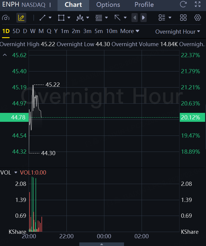 Shares of Enphase Energy surged 20% in overnight trading after the energy technology company posted profit and revenue that--while down from the prior year--still topped Wall Street's estimates. Shares have risen 16% in the last three months.