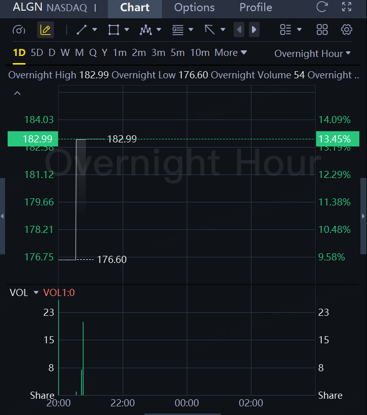 Align Technology stock surged 13% in overnight trading. The medical device firm's Q4 revenue grew 5.3% yr/yr, beating analyst expectations. Adjusted EPS for Q4 beat analyst expectations. Company repurchased 0.7 mln shares, completing $200 mln buyback plan.