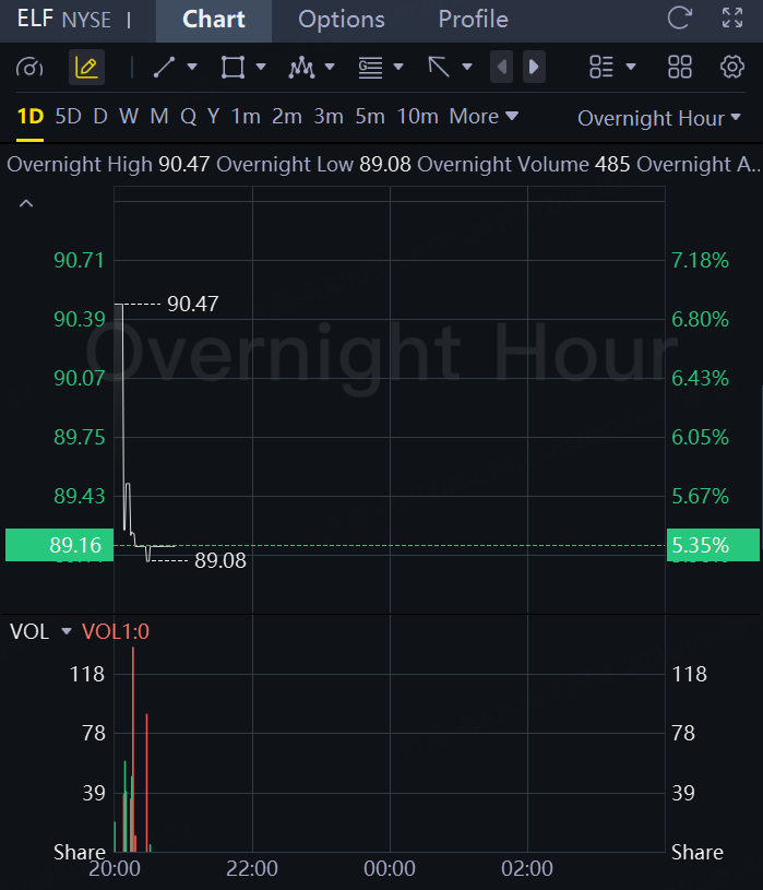 Shares of e.l.f. Beauty rose 5% in overnight trading after the cosmetics maker boosted its full-year outlook, as shoppers continue to seek out lower-priced cosmetics and as its acquisition of Hailey Bieber's minimalist beauty and skincare brand Rhode shows signs of paying off.