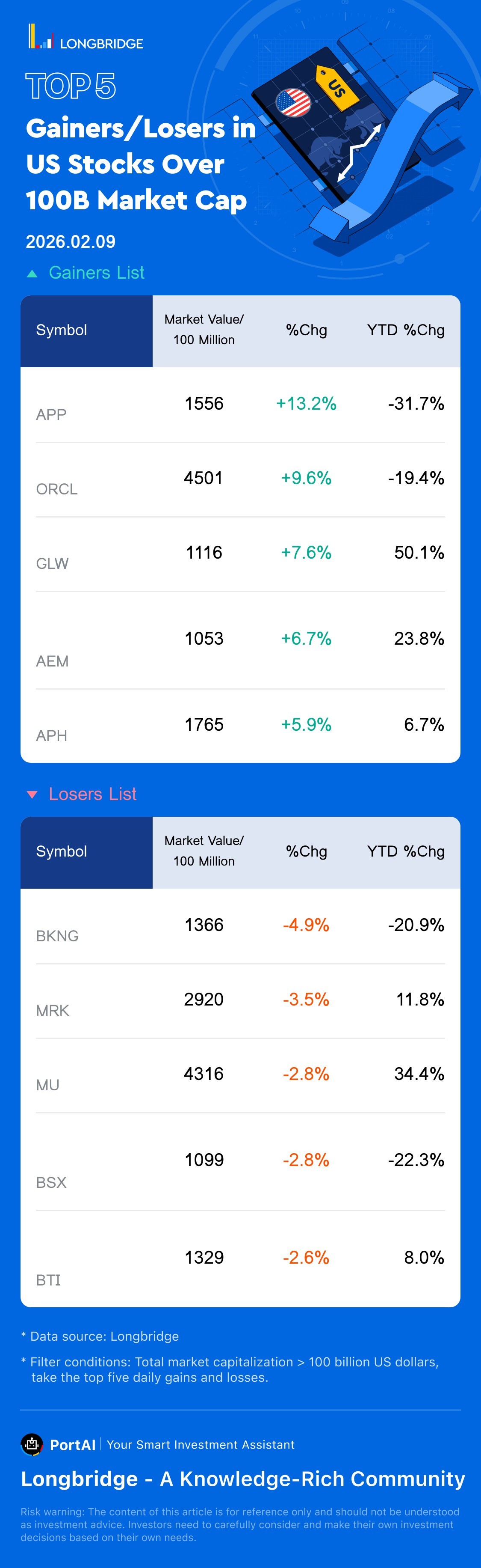 AppLovin(APP) rose 13.19%, with a trading turnover 4.6 Billion USD, and a year-to-date fell 31.7%.