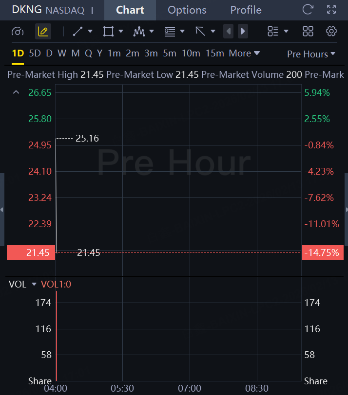 Online betting company DraftKings issued a 2026 forecast for sales and profit that fell short of Wall Street estimates, sending the stock tumbling 15% in premarket trading.