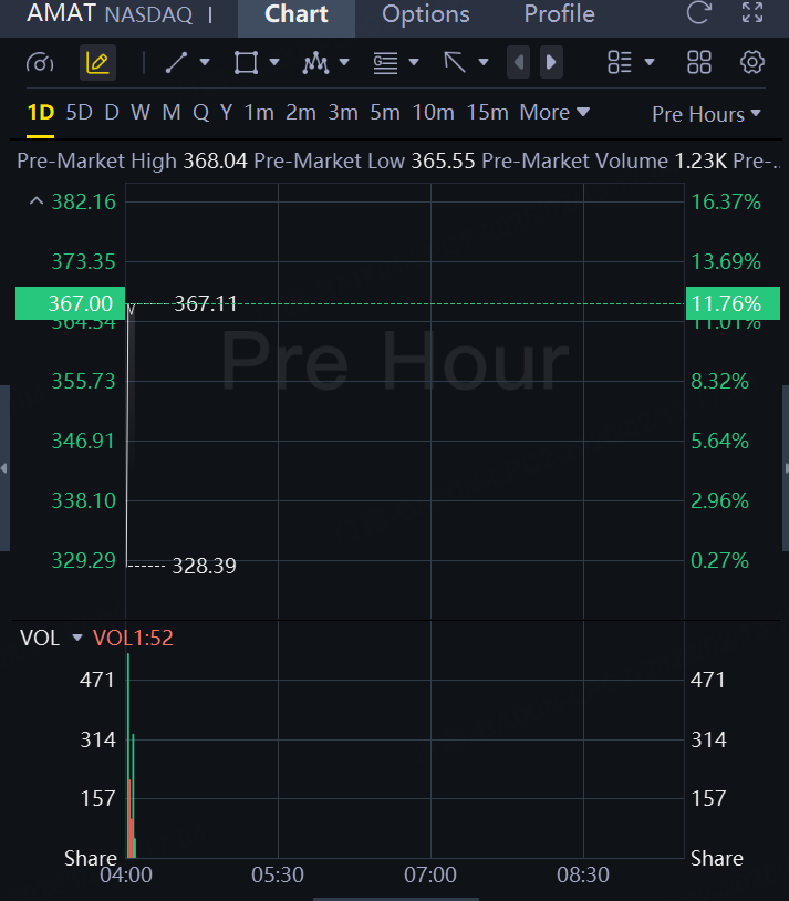 Applied Materials forecast second-quarter revenue and profit above market estimates, betting on a boom in demand for AI processors and a worldwide memory shortage to help drive sales of its chipmaking equipment. The company's shares rose 12% in premarket trading.