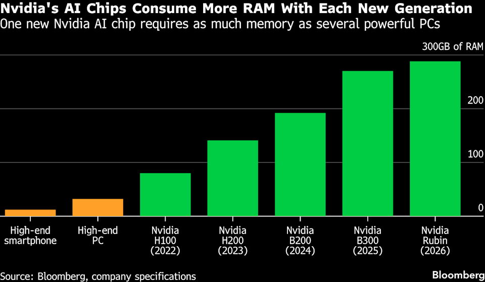 The fundamental reason for the squeeze is the buildout of AI data centers. Companies like Alphabet Inc. and OpenAI are gobbling up an increasing share of memory chip production — by buying millions of Nvidia Corp. AI accelerators that come with huge allotments of memory — to run their chatbots and other applications. That’s left consumer electronics producers fighting over a dwindling supply of chips from the likes of Samsung Electronics Co. and Micron.