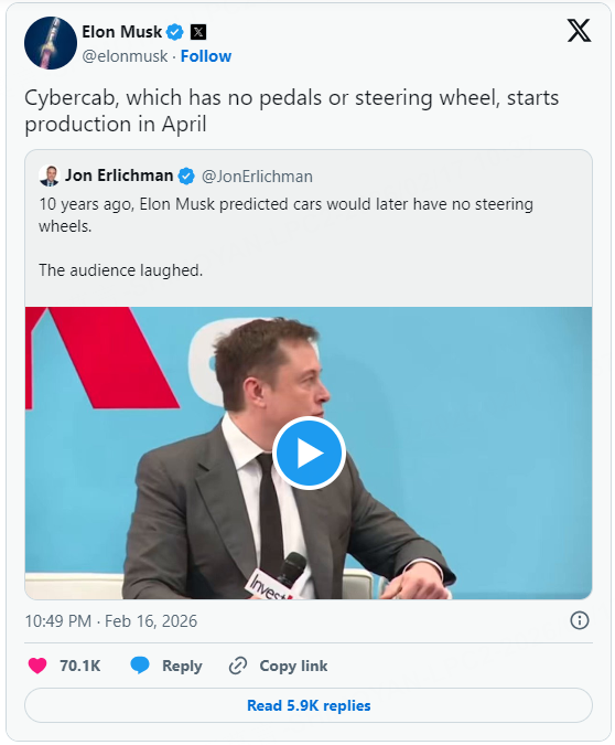 This marks the third occasion in the last six months that Musk has explicitly confirmed the Cybercab is slated to begin production in April 2026.